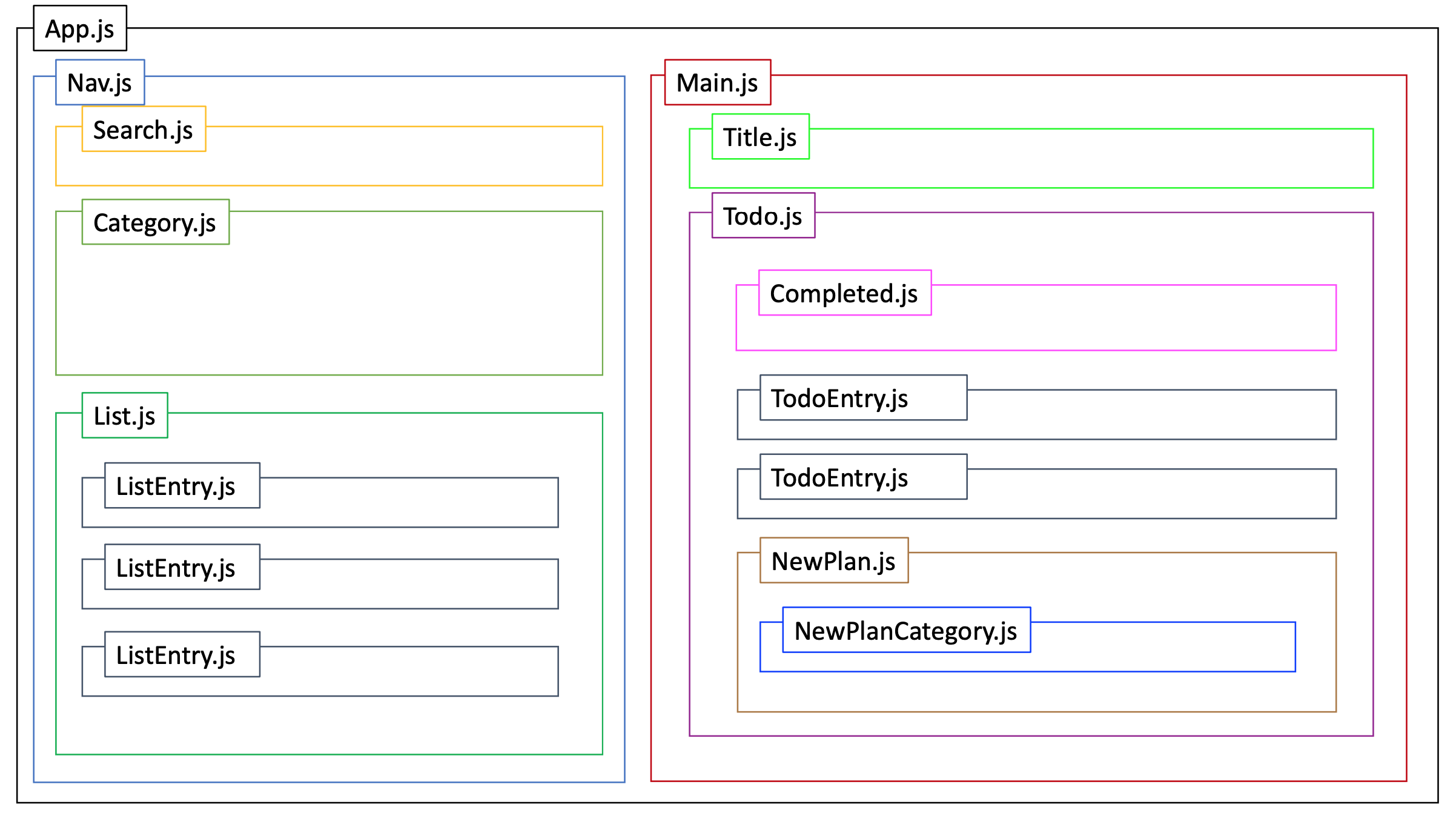 결과적으론 실패했다. 리스트나 카테고리(오늘/예정)에 들어가서 완료/진행중을 조작하면, 갑자기 선택한 리스트와 관련없는 전체 계획이 나타나는 식으로 스테이트 관리가 어려워 실패로 끝났다. state가 위에서 아래로 흐르는 일방적인 리액트을 가지고, 내가 구현하고자 하는 한 페이지 어플리케이션 하려니, 나중엔 내 논리에 꼬여 state가 어떻게 관리되는지 알 수 없게 된 것이다. App -> listEntry 로 state를 내려보내야 할때, Nav 혹은 list 컴포넌츠에선 굳이 넘겨 받지 않아도 되는 state들을 넘겨주어야 할 때도 있었다. 극단적인 경우로 list.js 에선 무려 7개가 넘는 state를 넘겨받곤 했다. 이렇게 기초적인 to-do list를 구현하는것도 이렇게 복잡하고 머리가 아픈데, 더 복잡한 어플리케이션을 내가 배운 수준의 리액트로만 구현해야한다면, state 관리때문에 리액트 사용을 포기하고 말것이다. (물론, 보완재가 있겠지..? 라우터라던가...?) 개발자들은 언제나 문제를 해결하고자 하는 습관이 있기 때문에, 일방적으로 흐르는 state를 한번에 모아서 관리하고자 하는 노력이 있었다.
