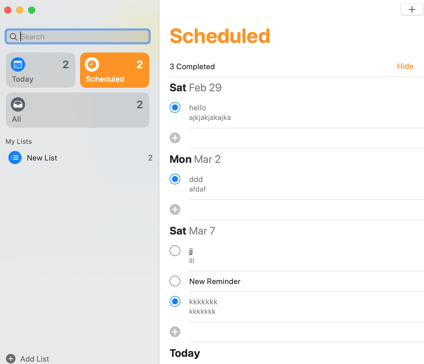 지난 주에 순수 react를 가지고 MAC의 미리 알림 애플리케이션을 따라해볼 기회가 있었다. 검색창과 오늘/예정, 리스트 추가/보기, 각 카테고리에 따른 완료/진행중인 계획을 볼 수 있는 앱이였다. 기본적인 과제로는 검색창, 리스트추가/보기, 각각 리스트에 따른 계획을 완료/비완료로 나누는 것이었지만, 나는 최신 기능도 함께 구현하고 싶어 욕심을 내었다.