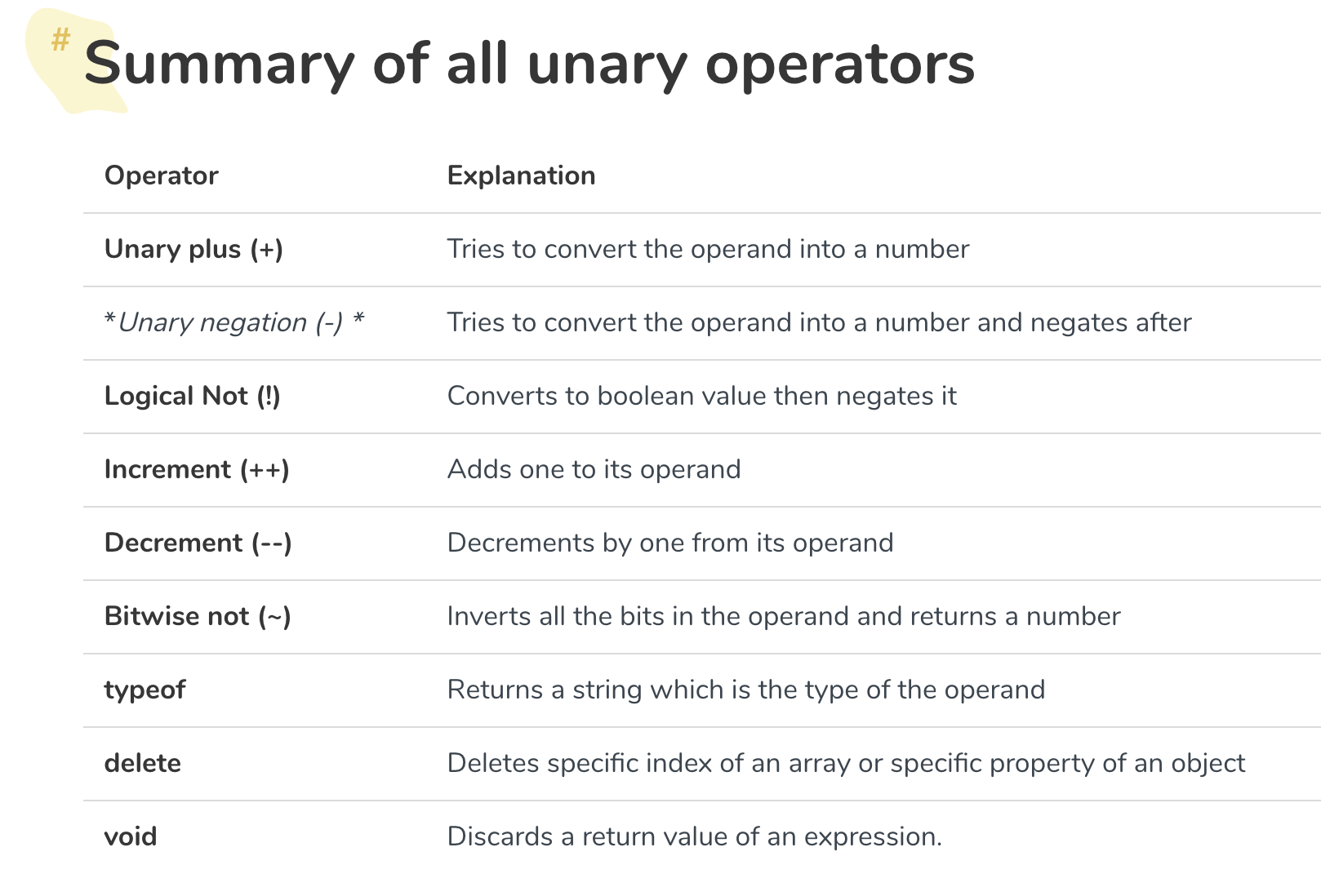 Unary Operators in JavaScript