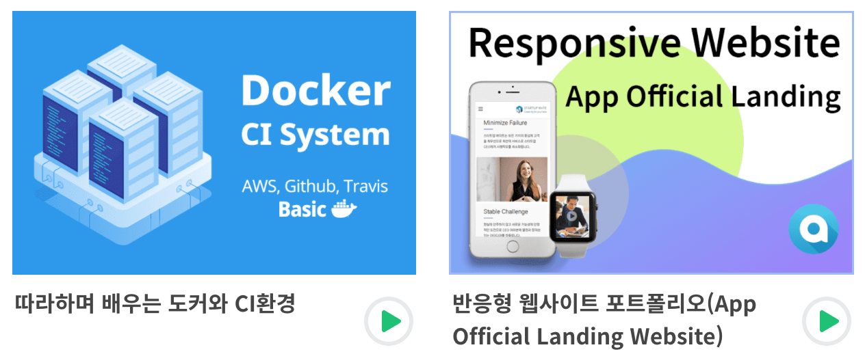 '따라하며 배우는 도커와 CI 환경'과 '반응형 웹사이트 포트폴리오'다